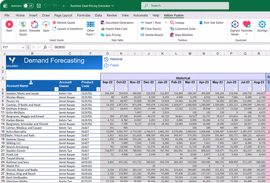 Work on quoting, pricing, forecasting, and deal models directly in Excel, all while staying connected to live Salesforce data.